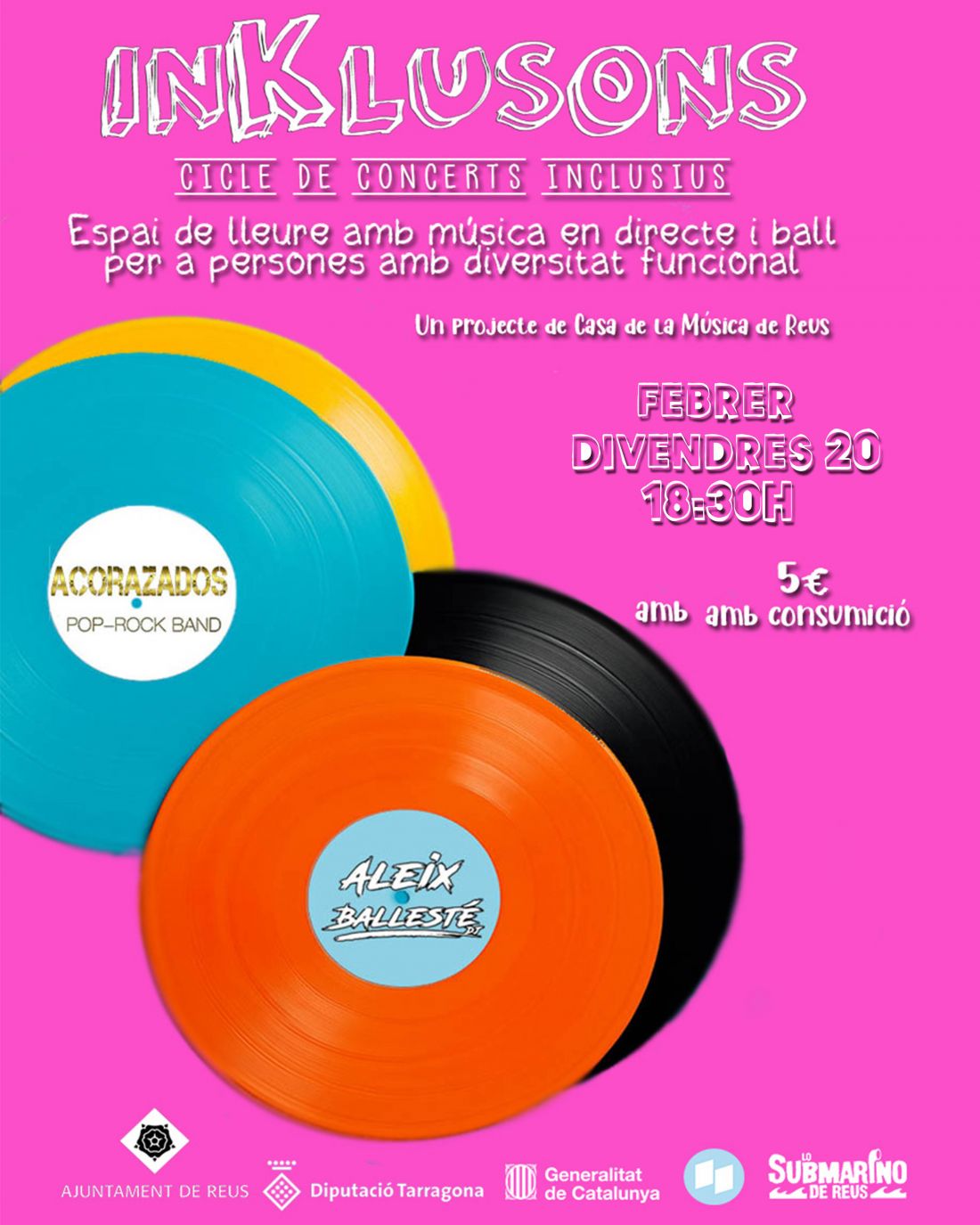 La Casa de la Música de Reus i Lo Submarino, de la mà de la xarxa de Cases de la Música, continuem apostant per la música en viu amb el cicle de concerts inclusius Inklusons, obert a persones amb diversitat funcional… i a tothom qui vulgui sumar-s’hi!