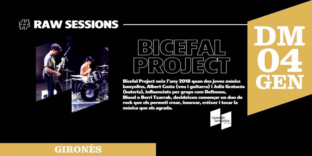 Bicefal Project neix l’any 2018 quan dos joves músics banyolins, Albert Costa (veu i guitarra) i Julià Gratacós (bateria), decideixen començar un duo de rock per poder tocar la música que els agrada. Els dos primers anys els dediquen a trobar la seva línia i compondre els primers temes: ‘Funeral’ i ‘2a’, autoproduïts amb en Gotard Mas. Després de la pausa del Covid en surt el seu tercer senzill ‘Per Marxar’, presentat el març de 2021. Tot i la precarietat dels darrers mesos, el grup ha seguit tocant i presentant-se sobre els escenaris mentre no abandonava la seva persistent recerca dins la música i seguia component nous temes. Aquesta constància i ganes de seguir sumant els ha permès ser un dels grups becats per les Cases de la Música del 2021, amb qui han gravat dos vídeos en directe de dos temes inèdits que us presentem a continuació. Durant l’hivern de 2022 gravaran el seu proper single que formarà part del seu primer EP de presentació amb Santi Garcia, de l’estudi Ultramarinos.