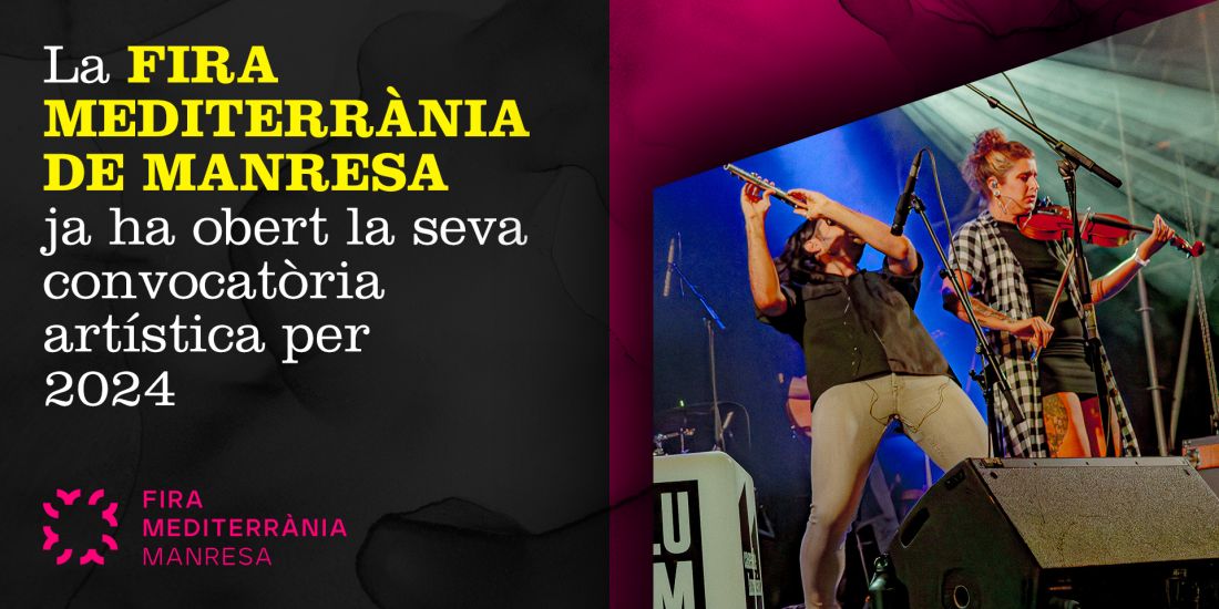 La Fira Mediterrània de Manresa prepara la seva nova edició i obre convocatòria artística, dirigida a tot tipus de propostes de música, d’arts escèniques o de carrer, de cultura popular i associacionisme que parteixin de l'arrel tradicional com a motor creatiu i que ens parlin en present. Així que si ets artista i vols participar, tens fins al pròxim dijous 18 de gener de 2024 a les 24 hores per presentar el teu projecte, consultant tota la informació i bases en la pàgina oficial del mercat multidisciplinari.