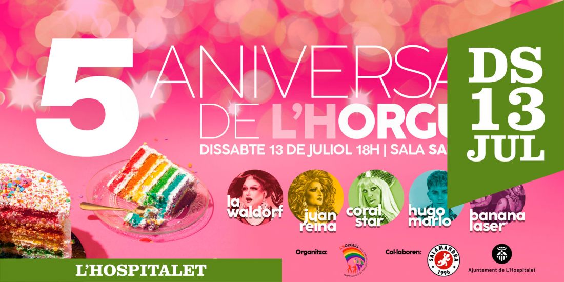 Celebrem el 5è aniversari de L'HOrgull, l'entitat referent a L'Hospitalet en defensa dels drets LGTBI. Una gran festa per celebrar la diversitat, per posar en valor tota la feina feta durant aquests cinc anys i compartir-la amb totes les entitats, col·lectius i persones amigues que han estat al seu costat durant aquest temps, treballant en la sensibilització, la formació i la lluita contra les discriminacions LGTBI-fòbiques.