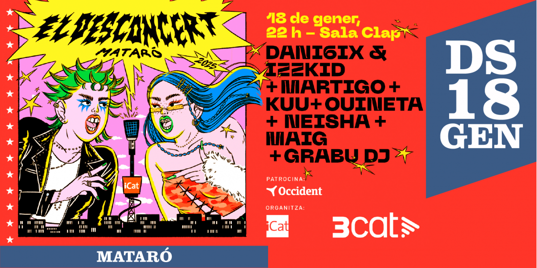 El Desconcert d’iCat 2025 arrenca a Mataró amb un cartell espectacular. El 18 de gener la ciutat de Mataró es convertirà en l’epicentre de la música emergent amb l’inici del Desconcert d’iCat 2025. La cita tindrà lloc a la capital del Maresme i reunirà un cartell que combina el millor del talent local amb propostes destacades del panorama català.